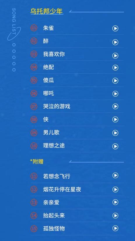 《乌托邦少年》作为时代少年团的第二张专辑,是热爱与梦想的邂逅,汇聚了少年们无限的能量,见证着他们在音乐道路上的突破与成长。专辑开篇用《朱雀》探索更具时代性的“新国风”表达,贯穿全曲的活泼笛声成为难忘记忆点,也贡献了无数个高能舞台,成为爆米花们心中的“团”歌。而接下来的《醉》《侠》《哪吒》《男儿歌》也延续对精神世界的探寻,历经楚辞朱雀、神话哪吒、侠道精神,少年们用音乐坦率表达对世界的所感所想。《我喜欢你》《绝配》《傻瓜》《哭泣的游戏》《理想之途》,则回到现实世界,唱出共同经历过的单纯与快乐,倾吐少年清甜小烦恼,也关怀每一位校园暴力受害者,传递温暖与希望。