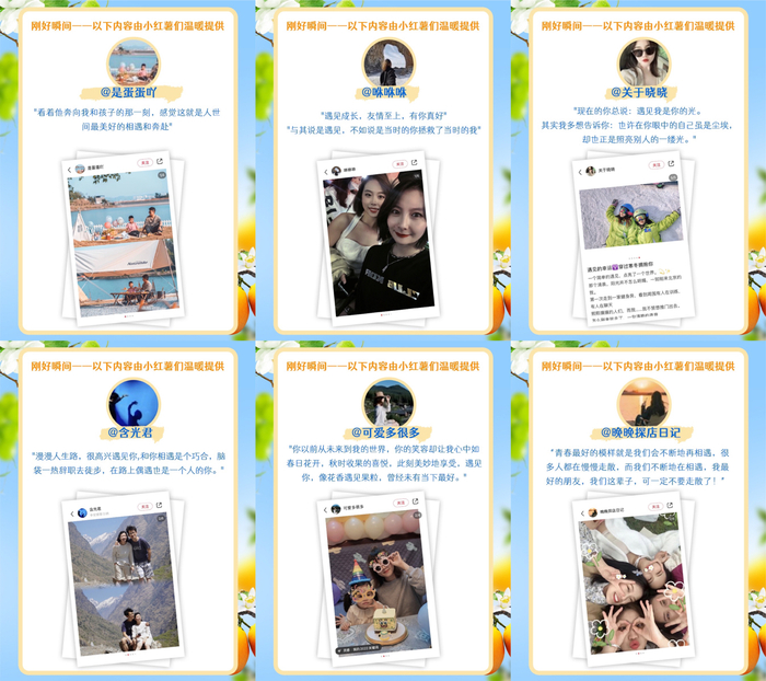受明星推荐官CP故事的感召,用户也自发加入到分享的行列,在他们的眼中,“刚刚好”是亲子玩闹的时光、闺蜜默契的相处、恋人同游时的亲昵......目前已有2.8w+用户参与话题互动,共计发布4.5w+篇温暖治愈故事,在站内营造出“刚刚好”的温暖氛围。