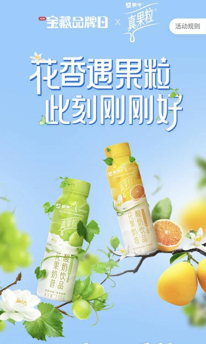 值新品花果奶昔上市之际,蒙牛真果粒牵手小红书「宝藏品牌日」IP,深度关联小红书用户的“刚刚好“的生活态度,共创了一场营销大事件。