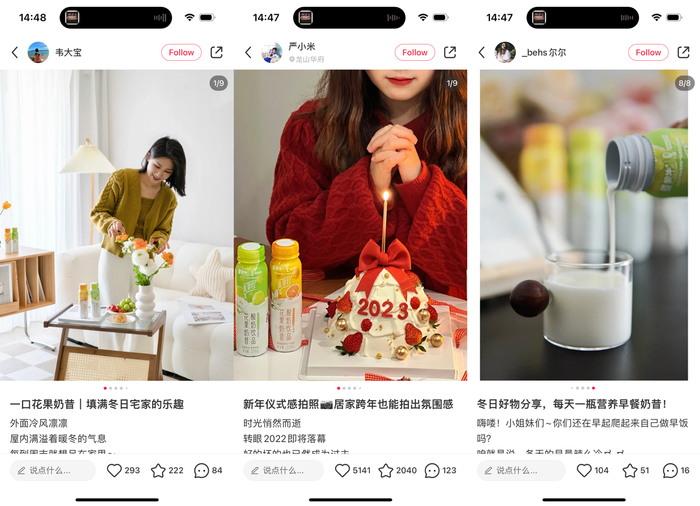 明星推荐官@Cecilia宋妍霏、 @蒋依依,《心动的信号》里的甜蜜情侣@赵琦君 和@杨凯雯rr,以及@洪辰瑶Kelly等优质KOL分别从友情、爱情等不同角度温馨诠释了“刚刚好”的意义,推荐官笔记爆文率达到100%,潜移默化的影响着粉丝们的心智,让话题热度、用户关注度不断攀升,以价值感召夯实花果奶昔CP心智。