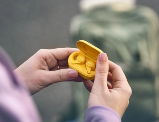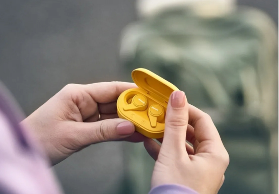这款耳机的设计实在是太好看了。我给女朋友选择是秋叶黄,因为非常适合她温柔娴静的气质。它有四种不同的配色:流云白、超梦黑、早春绿、秋叶黄,可以满足黑白党的低调选择,也有鲜艳明快的亮色款。整体设计看上去特别阳光,女生戴上的话,搭配起帽衫、或者是T恤都很好看,有那种朝气蓬勃的运动美感。