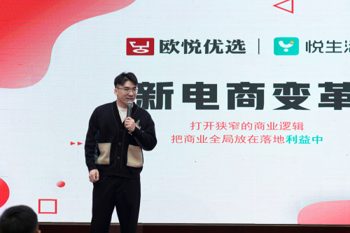 欧悦优选运营总监朱总通过“新电商变革”的激情演讲,向大家阐释了欧悦双生态模式的诞生必然性与发展内生力,并向大家隆重介绍了欧悦生态核心纽带——悦服务版块。悦服务联通欧悦优选商城与悦生活,将“引流”与“留存”整合为一,形成相互促进的闭环链路,是一个没有天花板的价值系统,也正是新电商变革的内涵。