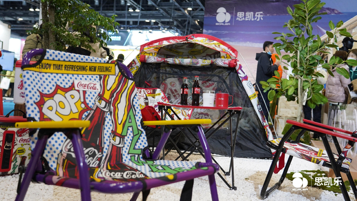 特别值得一提的是,在品牌成立20周年之际,思凯乐SCALER携手全球知名的饮料品牌可口可乐Coca-Cola,带来全新的户外露营联乘系列,打造了限定版“可乐风”露营产品,并分为经典、波普(POP)、复古三大产品系列,带来一系列极具潮流美学风格的露营装备,并在此次ISPO展会现场进行联名系列全球首发。