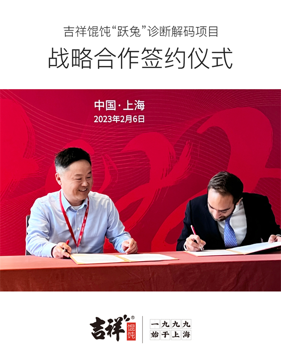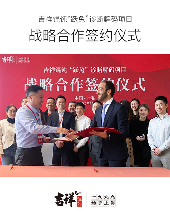 在餐饮市场经济回暖的大趋势下,如何能先他人一步抢占市场?其中,连锁品牌凭借着品牌化、专业化、规模化、连锁化等优势,持续被市场看好,蕴含巨大发展潜力。吉祥馄饨作为全国闻名的餐饮连锁品牌,站在餐饮经济复苏的风口下,也开始主动出击,于2月6日与全球著名咨询公司携手展开战略合作,签约“跃兔”诊断解码项目,共同探索新发展格局下,餐饮品牌的未来趋势以及创新路径。