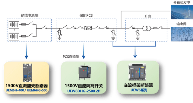4、储能作为一种优质灵活的调节能源,可以平抑新能源波动,增强电网稳定性,因此创造了巨大的电力储能市场。宏发储能系统解决方案配备UEM6H/UEM6HG直流塑壳断路器、UEW6DHG直流隔离开关、UEW6交流框架断路器,可广泛应用于发电、输配电和用电各个环节,同时满足1500V高电压方案。