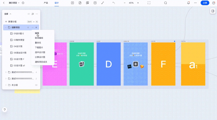 在设计页,也更新了按分组下载设计图文件夹的功能,文件夹命名规则也从项目名称更新为项目+分组名称,展示信息更清晰,更容易区分内容。