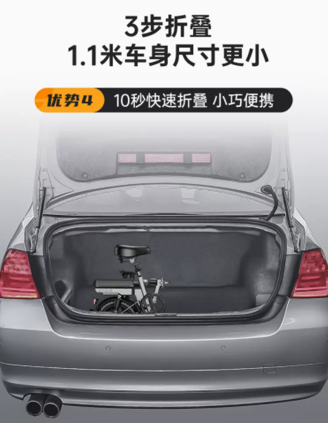 对于准备踏足代驾行业的准新人而言电动自行车的选择是万里长征需要走的第一步。D系列整车造型小巧精致,外观上与传统的折叠自行车相差不大,采取铝合金材质,轻量化但强度高,车身尺寸110*54*97cm,比起常规的电动自行车车身足足缩短了20cm,折叠后体积较小,尺寸仅为58*30*60cm,10秒折叠简单易操控,整车重量约为19kg,轻松拿取,放入后备箱不占空间。