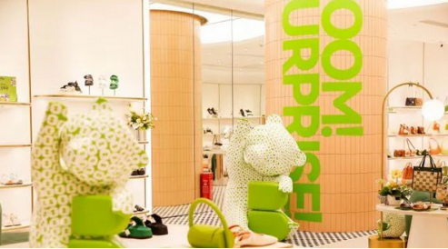 成都BELLE旗舰店,设计以低饱和度的杏粉色和金属色为主色调,同时点缀了绿色沙发和其它流行元素,简约、时尚、大气,符合天府之国的恬静氛围。此外,该店还推出了成都城市限定系列产品——SURPRISE!YO-YO系列。系列产品是品牌设计师基于对成都城市元素的解读,以城市标志熊猫和潮玩IP作为鞋款系列色彩,打造的YOYO漫步系列鞋款。同样,设计师以成都城市ICON熊猫为设计元素,结合熊猫憨态可掬的形象,推出YOYO系列限定水桶包。众多新奇创意,让消费者融入感和体验感共存,不仅成为时尚购物的好去处,更能成为消磨时间、放松心情的打卡点。