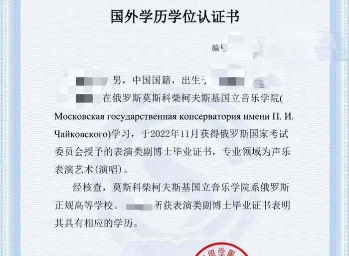 目前, 地处北京市的留学生服务认证中心对于俄罗斯表演副博士 的认证和其他国家有一 定区别: