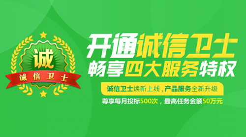 诚信卫士是一品威客网平台为保障交易顺利进行的一项有力武器,服务商承诺“保证完成”“保证售后”“保证原创”,用于在任务出现纠纷时进行优先赔付,提升知识产权保护力度,实现健康的线上交易环境。
