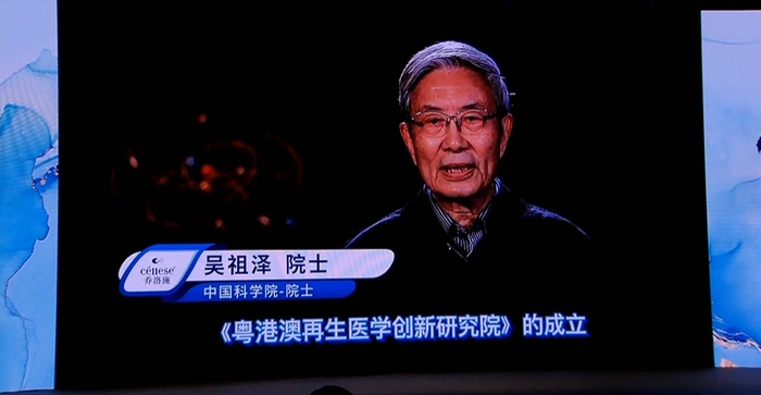 中国科学院吴祖泽院士、中国工程院廖万清院士为大会作重要讲话,中山市委常委叶红光副市长、中国整形美容协会张斌会长、中国医药生物技术协会吴朝晖副理事长、清华大学出版社孙宇副主编为大会致辞、中国医药生物技术协会再生医学分会主任委员裴雪涛教授为本次大会主持并致辞。粤港澳再生医学创新研究院魏欣董事长,在会上介绍了再生医学创新研究院的成立宗旨与建设目标,以及中山健康基地集团余从洪副总经理对粤港澳大湾区生物医药产业发展新机遇作分享。