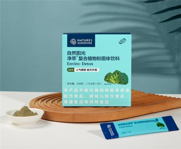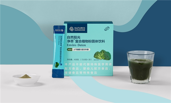 自然阳光始终倡导“科技为先,自然健康”的理念,坚持以纯天然的营养物质助力健康。自然阳光净萃复合植物粉固体饮料便是通过圆苞车前子壳、叶绿素、蛋白核小球藻、西兰花及西兰花种子水提物、羽衣甘蓝、马齿苋等天然营养成分,多角度帮助调节人体代谢。产品中还添加了L-谷氨酰胺、PC4等多种有效成分,能够帮助综合调理人体消化、呼吸和内循环三条代谢通路,清除体内冗余垃圾,使代谢系统焕然一新。
