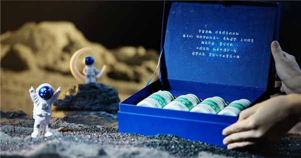 联名款礼盒以“启梦未来 星辰大海”为灵感,熠熠生辉的“星空蓝”为主色调,揉合“小朋友”“航天”“火箭”等立体插画元素,融入对宇宙浪漫无边的想象空间,仿如熠熠星光散落浩瀚宇宙,展现了孩子们对浩瀚宇宙的浪漫想象。鼓励孩子们勇敢追求梦想,以健康的体魄奔赴心中的星辰大海。