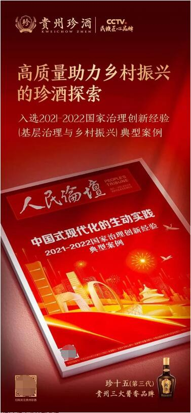 在2022年12月1日举办的国家治理高峰论坛年会上,“高质量助力乡村振兴的珍酒探索”案例入选《中国式现代化的生动实践——2021-2022国家治理创新经验(基层治理与乡村振兴)典型案例》,全国仅10家入选!
