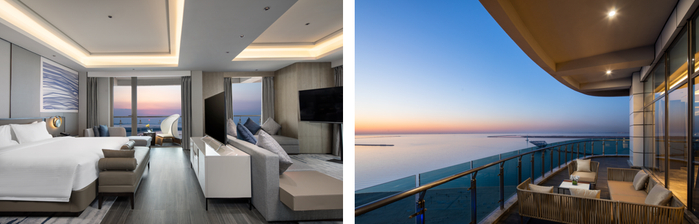 酒店情人节推出限定礼遇,套餐包含每层仅有一间的270°海景大床房1间夜,以及双人自助早餐、双人甜蜜西式套餐。超大独立的观景阳台,宽阔的视野,为恋人们营造专属静谧别致的二人世界,带着您心爱的TA一起看日落归于大海,共度良辰美景,感受海风的缱绻浪漫。