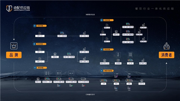 绝配供应链创立于2018年,是一家数字化供应链创新服务平台,专注于为餐饮企业提供物流基础设施建设和数字化流通服务。在绝味食品全国14000家门店鲜品配送网络资源以及多年冷链流通场景的实战磨炼基础上,绝配供应链聚合社会化冷链资源,依托数字化冷链技术平台,搭建省、市、县、乡、镇多层级冷链配送网络,采用“共享”、”共配”模式, 优化供应链中间环节,实现供应链物流规规模效应,而不是通过以往的硬着陆、暴力降低价格为等手段。目前,绝配供应链已经服务了300+餐饮客户,10万+家的服务门店。