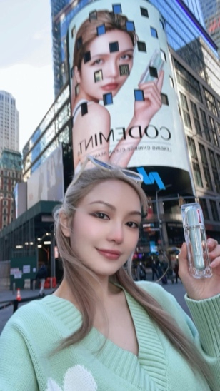 周扬青及其个人美妆品牌CODEMINT亮相纽约时代广场