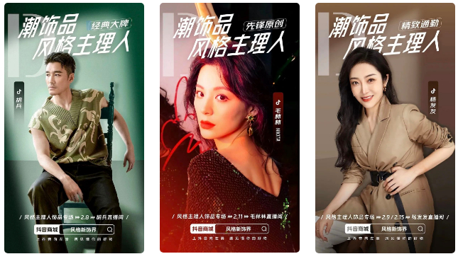 除了风格赛道的细分,抖音电商#风格新饰界 还设定了“风格主理人”,通过长期年度项目合作方式锁定头部明星达人,获得更多曝光和转化。