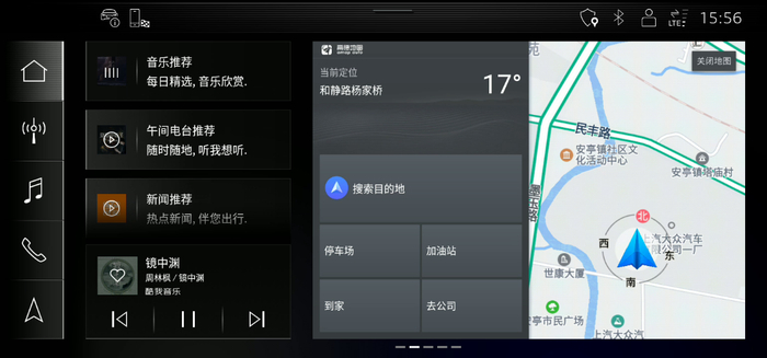具体来说,AI Launcher会在用餐时段发出就餐提醒,根据车辆实时位置为车主推荐附近餐厅,并提供评分、评价等详细信息。当车主选定餐厅后,系统将自动生成路线,一键导航至目的地。当车辆燃油不足时,AI Launcher会为车主优选出附近的加油站,并规划出抵达加油站的最佳路线。当进入繁忙的街区,AI Launcher还可以根据LBS精准定位智能推荐停车位。