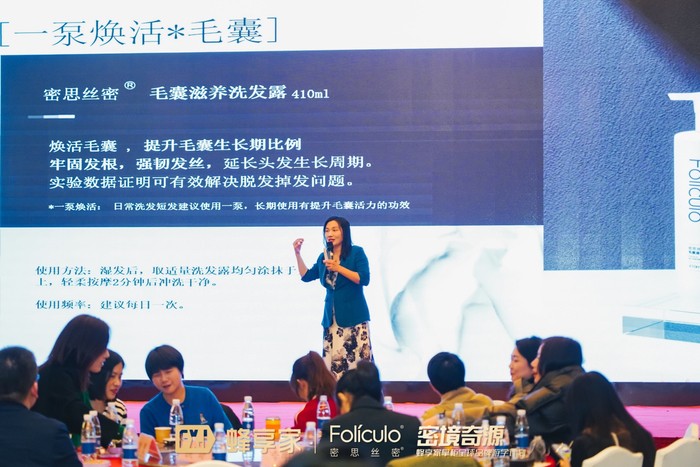 密思丝密是持洗发水和滋养液双特证的育发防脱专家,防脱育发系列产品正是密思丝密的主打产品,有着多个独家认证专利,打破了目前市场流行的诸如生姜养发或控油防脱的伪科学,证明毛囊才是头发健康的根本。在溯源现场,蜂享家掌柜们先是检测了毛囊,而后观察了密思丝密科研人员带来的滋养液燃烧实验、 滋养液渗透实验、护发素修复实验,全面了解每一个产品的功效。 正如密思丝密品牌创始人李明霞博士所言,“安全、有效、高端”是密思丝密产品的三个特征,通过现场实验与讲解,掌柜们纷纷见证了密思丝密强大的科技力产品力。