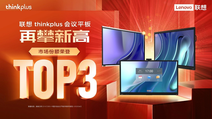 近日,据奥维云网发布的《AVCDDS-中国大陆会议平板市场研究报告-2022Q4》报告中显示,联想thinkplus会议平板市场份额达到7.8%,已跃居至中国市场第三。面对外部市场和客户需求极具变化等客观环境,thinkplus取得这份佳绩实属不易,而它对于thinkplus不仅具有里程碑意义,更标志着其在国内市场受到了广泛认可。联想中国区中小企业客户业务群 thinkplus事业部总经理 刘嘉表示:“联想thinkplus会议平板闯进市场前三,离不开每一位客户和合作伙伴的大力支持!这将是我们努力的‘新起点’,不断优化产品体验,不断提升客户满意度,是推动thinkplus不断发展的源动力”。