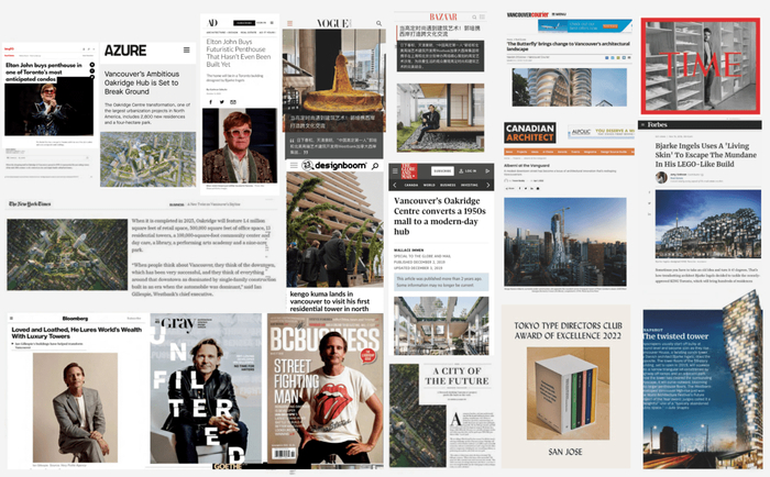 温哥华一号公馆、研科云庭、天瑜,以及正在建造的蝴蝶、晨曦、橡树岭、多伦多一号公馆等正在刷新城市天际线,打造全新地标。它们已经享誉全球,并屡次荣获国际奖项,备受媒体追捧。