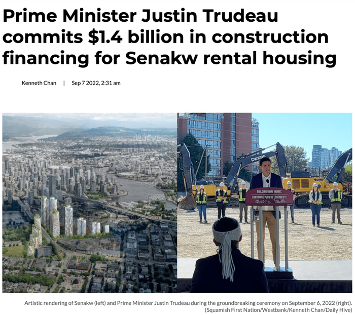“2023年对许多开发商来说可能是充满挑战的时期。那些拥有多样化投资组合的开发商,如Westbank的Gillespie,在多伦多、卡尔加里、西雅图、圣何塞、东京和温哥华都有住宅、商业和零售项目,有更好的机会渡过这场风暴。去年秋天,Westbank和斯阔米什原住民部落(Squamish Nation)位于Kitsilano的11座Seńákw项目,从CMHC获得了$14亿的低成本贷款,以保持该项目百分之百的出租。”