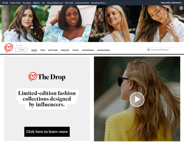 限时发布限量版产品的“Drop”模式,近年来备受时尚界推崇。在2019年,亚马逊顺应这一趋势推出了The Drop,旨在为消费者提供限量版系列、潮流灵感、独家合作以及专业造型技巧,帮助热爱时尚的用户发现最新潮流和当季必备单品。The Drop不仅与卡戴珊、大威廉姆斯等全球明星和红人进行过合作,也成为了美宝莲、李维斯等众多品牌尝试创新营销方式和提升产品销量的新选择。比如,Champion曾借助与The Drop及网络红人Rebecca Louise的限时合作;知名运动品牌新百伦也曾与The Drop合作推出限量版或新品,利用美国奥运选手Emma Coburn和Gabby Thomas在体育爱好者中的影响力,推动品牌曝光和销量提升。