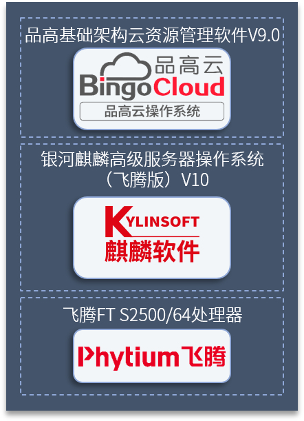 品高云联合适配认证中心基于品高云基础架构云产品、飞腾处理器和麒麟操作系统构建联合认证体系,通过提供多维度、一体化的测试环境,为国内包括基础设施、通用软件、行业应用软件等在内的各类自研软硬件产品提供兼容性测试及信创适配认证。目前与飞腾公司、麒麟软件共同建立的三方联合适配及认证流程实现了多中心资源配置,提升了兼容适配的测试效率。