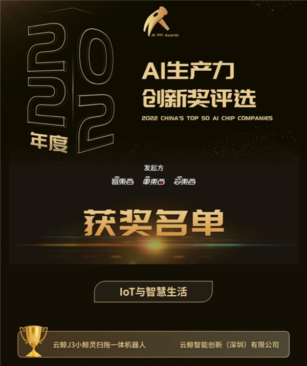 引领行业智能化发展方向!云鲸扫拖机器人J3获2022年度AI生产力创新奖