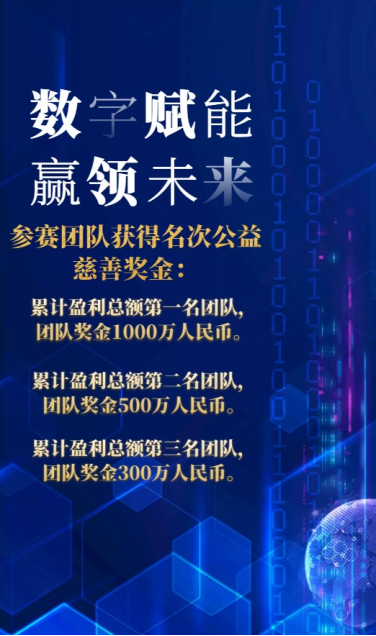 累计盈利总额第一名团队,团队奖金1000万人民币。