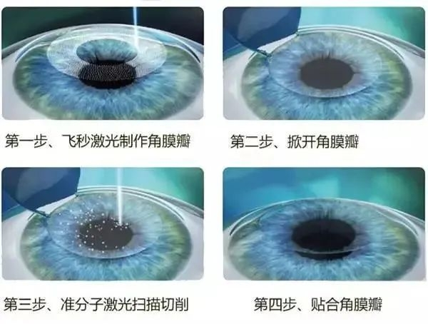 半飞秒手术是一种角膜板层的激光手术。手术分两步:第一步用飞秒激光爆破制作角膜瓣;第二步掀开角膜瓣,用准分子激光消融一部分角膜组织,再把角膜瓣复位,改变角膜曲率从而矫正近视,手术需要两台专业仪器协作完成。