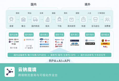 针对行业痛点与需求,云钠科技推出「云钠魔境」作业台,一个网址实现货物轨迹实时可视、智能追踪、异常预警 ,并支持国内海运、空运、国际快递、国内集卡全程节点查询,旨在助力供应链优化,以此提高跨境物流的可见性与可控性,带来更好的客户服务体验。