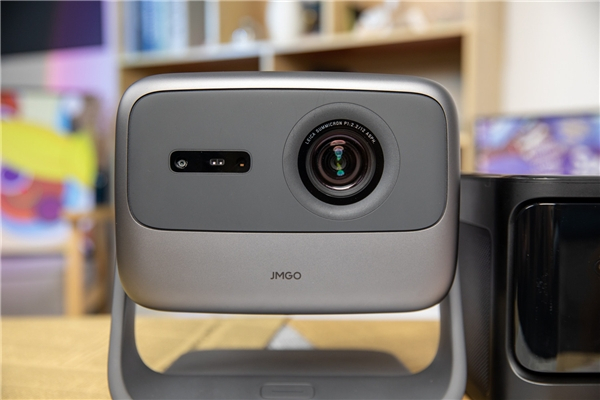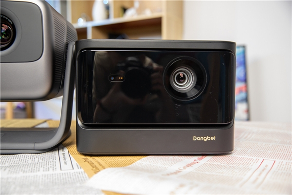 当贝X3则是采用了方正的造型,悬浮式面板的设计搭配玻璃面板看上去也不错。正面左侧是飞行传感器ToF+CMOS摄像模组,可以实时检测自动对焦,右侧是投影镜头。