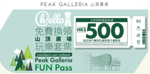 山顶是香港最具标志性的地标之一,旅客可以在此观赏享誉国际的维多利亚港两岸以及薄扶林一带的景色,第一次来香港的人一定会爬上这里,俯瞰港岛华灯初上的喧嚣,尽览维港两岸的绝美夜景。山顶广场现正推出「山顶广场玩乐套票」 ,供hello会员每周于山顶广场地下礼宾部免费换领,每份套票包含价值高达港币500元 指定商户包括莎莎、奈雪的茶等购物及餐饮电子优惠券。