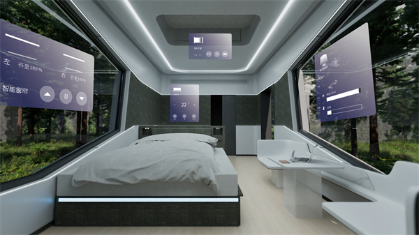 米墅太空舱M7采用Aqara智能家居系统 ,将智能照明系统、智能窗帘系统、智能影音系统、智能安防系统等集成,可以通过本地端控制、手机控制或语音控制灯光、窗帘、影音、空调、新风等设备,全屋智能妙控 。内置智能管家小乔,可以语音控制查看全屋设备和场景,只会语音控制的管家不是真管家,小乔不仅能完成定时、延时等简单功能,还有更多细腻出众的本领,全屋大小事,都是一句话的事 。还可以自定义各种个性化场景模式,如一键开启影院模式:窗帘自动关闭,灯光调节至合适亮度、色温,空调开启至人体舒适温度,电影自动放映。在不同的需求下营造别样的人居氛围,未来智能空间演绎千人千面的全屋智能生活方式。