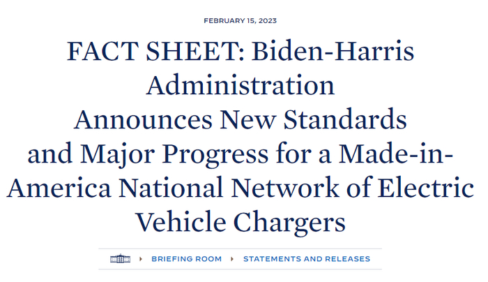 近日,拜登政府在白宫网站上发布文件,宣布关于全美电动汽车充电桩网络建设的新标准。根据这份最终规则,所有接受美国《基础设施法案》补贴生产的电动车充电桩必须在美国建造,立即生效。