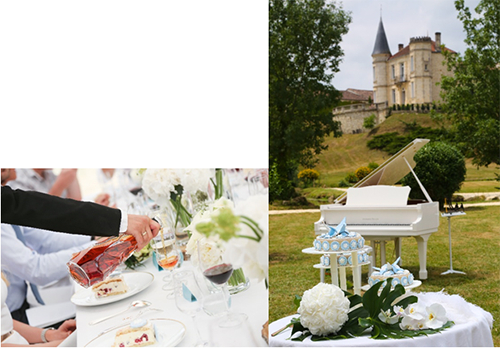 他们的婚礼总共举行了 3 场庆典:一场是在位于法国干邑的家族酒庄中举办。1863年,卡慕家族的干邑事业正是源起于此。