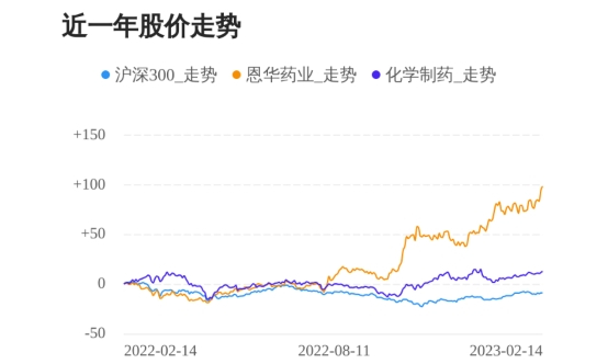 值得注意的是,近一年恩华药业股价已累计上涨98.54%,几乎走出翻倍行情。此外,同期沪深300指数下跌-8.93%,化学制药板块上涨13.67%。