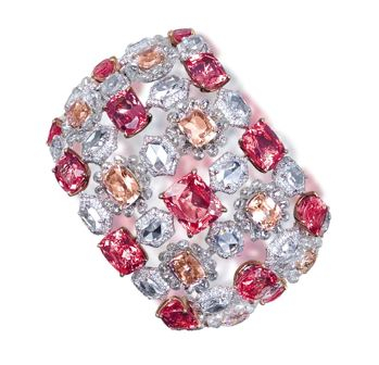缅甸粉红蓝宝石与钻石戒指,缅甸红宝石与钻石耳环,粉红蓝宝石配钻石手镯