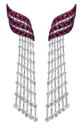 她指间佩戴一只珍贵罕有天然缅甸无烧粉红蓝宝石戒指,相辉映的是一对缅甸红宝石与钻石耳环,以及粉红蓝宝石配钻石手镯,璀璨亮眼,让人着迷。