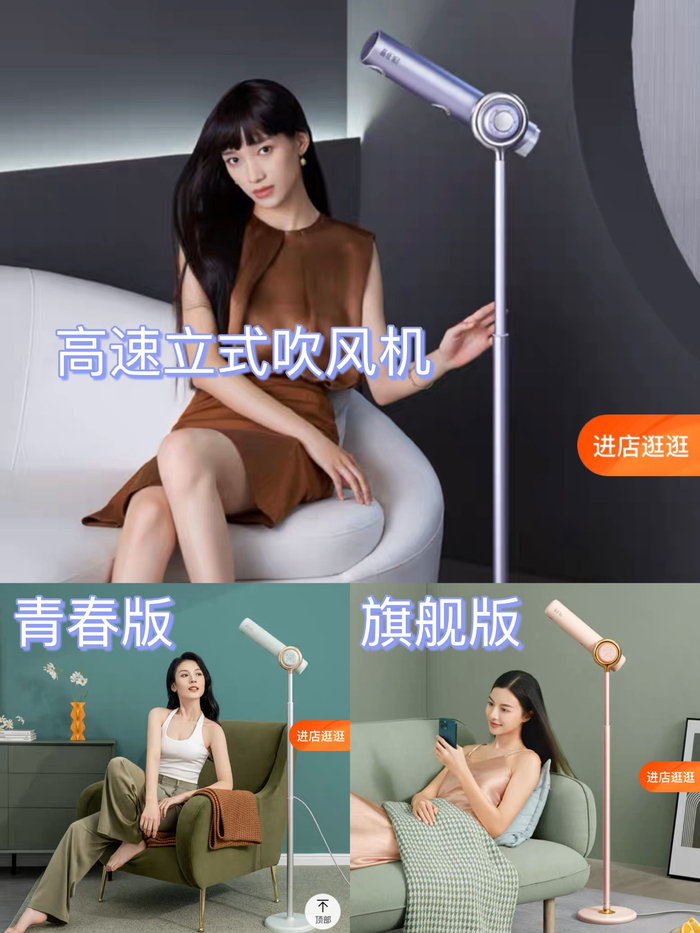三款立式吹风机的颜值都很高,青春版和旗舰版的功能差不多,能满足大部分人的速干护发需求,如果是追求性价比且是独居的女生建议入手青春版;如果是家里有宝宝的女生建议入手旗舰版,不仅可以自己用,拿来给宝宝吹头发也很方便;至于高速版,更适合经常烫染发导致发质受损或者追求更快速干和养发效果的女生。