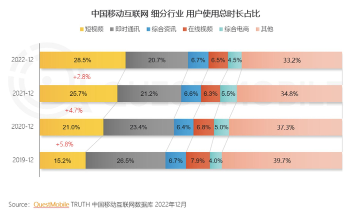 不过,抖音集团、蚂蚁集团、拼多多、快手持续增长,分别达到9.97亿、8.50亿、7.01亿、5.80亿;相应的用户时长占比上,腾讯系、抖音系、快手系、百度系、阿里系分别为33.6%、24.5%、10.2%、8.0%、6.2%。