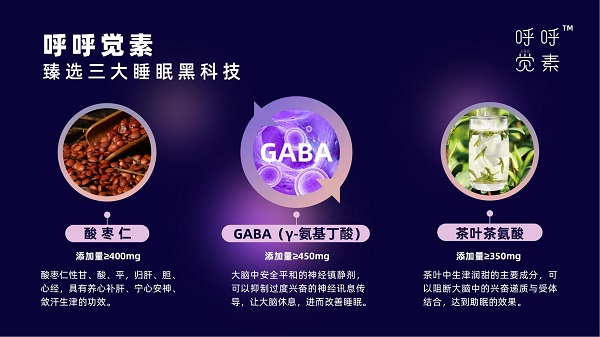 而想要拥有好睡眠,选择呼呼觉素这一款睡眠饮,不仅是因为它颜值高且无副作用,最主要是添加了400mg的酸枣仁,搭配睡眠黑科技GABA和茶氨酸,让你深睡整晚,回归自然睡眠。