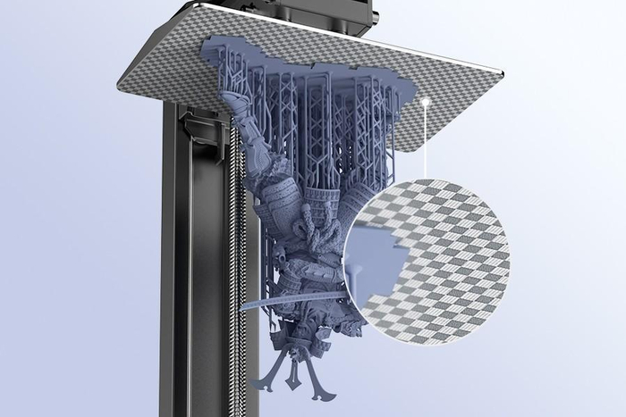 Photon Mono 2有不少能精准助力新手新手打印成功的贴心小设计,打印平台从拉丝工艺金属升级为镭雕工艺金属,相较于拉丝平台,镭雕工艺平台的附着力更强,提高了首层树脂的粘附效果,从而大大保障了打印成功率。