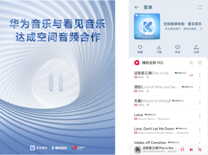 华为音乐与看见音乐达成空间音频版权合作,多风格作品首发上线