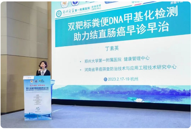 在慢病管理学组学术年会论坛上,丁素英主任从结直肠癌的流行病学、结直肠癌早诊筛查相关指南共识以及粪便DNA甲基化检测的研究与应用三个方面就《双靶标DNA甲基化检测助力结直肠癌早诊早治》 做了专题报告。