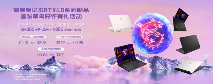 微星笔记本RTX40更多新品来袭:早鸟活动享总额700元兑换券!