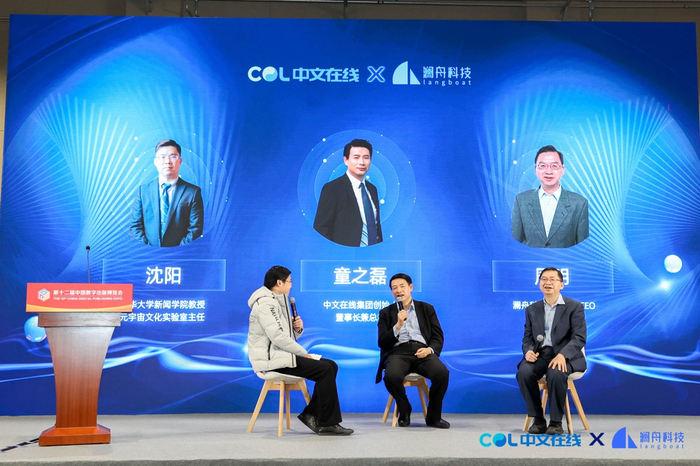 那么,ChatGPT只是一个聊天工具吗?中国会诞生自己的ChatGPT吗?2月16日的第12届中国数字出版博览会上,中文在线集团董事长兼总裁童之磊,澜舟科技创始人兼CEO周明,清华大学新闻学院教授、元宇宙文化实验室主任沈阳对此展开了深度讨论。