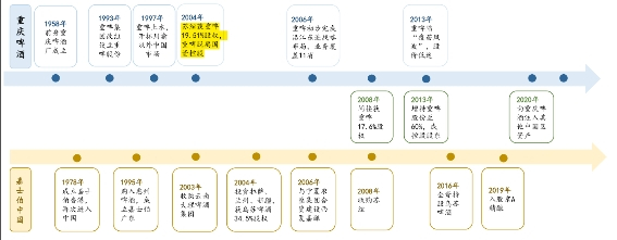 经过50余年的发展,重啤已经从一家区域型啤酒企业成长为全国性啤酒企业,拥有26家酒厂,核心市场从重庆、四川和湖南三省市扩展到新疆、宁夏、云南、广东和华东各省,实现了以五大业务单元为基础的全国布局。公司目前旗下拥有“本地强势品牌+国际高端品牌”的品牌组合,其中本地强势品牌包括重庆、山城、乌苏、西夏、大理等,国际高端品牌包括嘉士伯、乐堡、凯旋1664等。